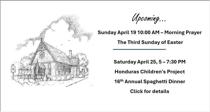 Holy Eucharist on the 2nd, 4th and 5th Sundays of each month and Morning Prayer on the 1st and 3rd Sundays of the month.
