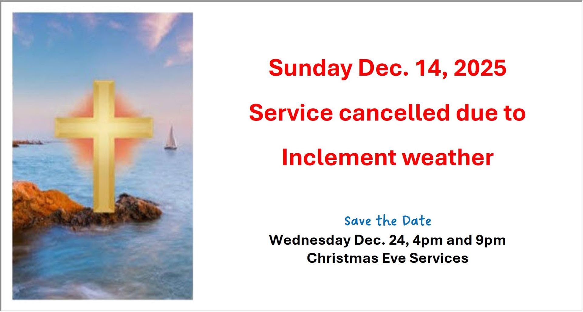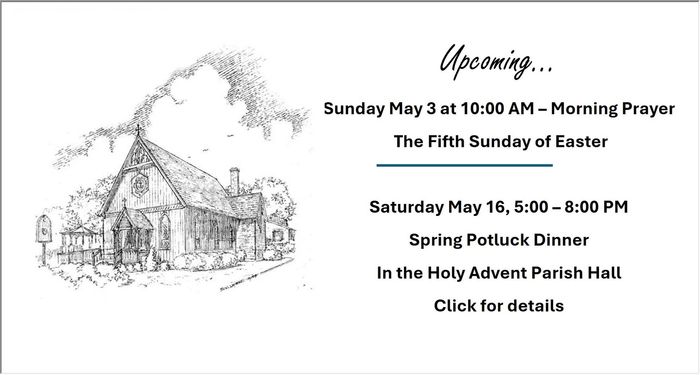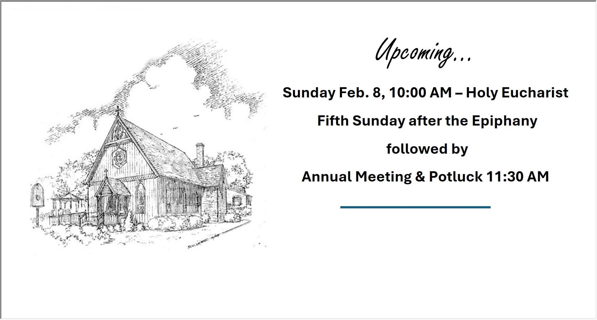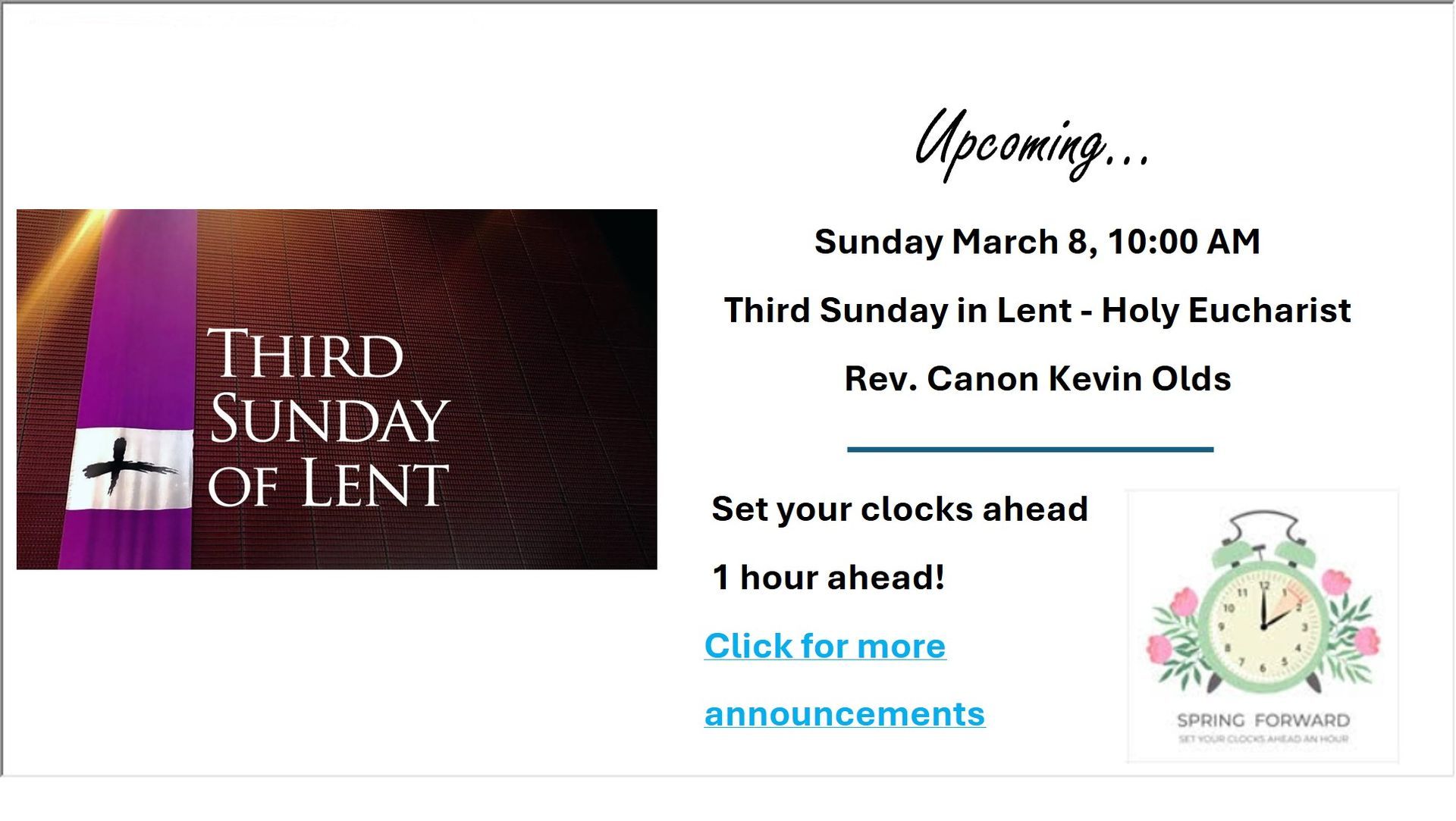 Holy Eucharist on the 2nd, 4th and 5th Sundays of each month and Morning Prayer on the 1st and 3rd Sundays of the month.